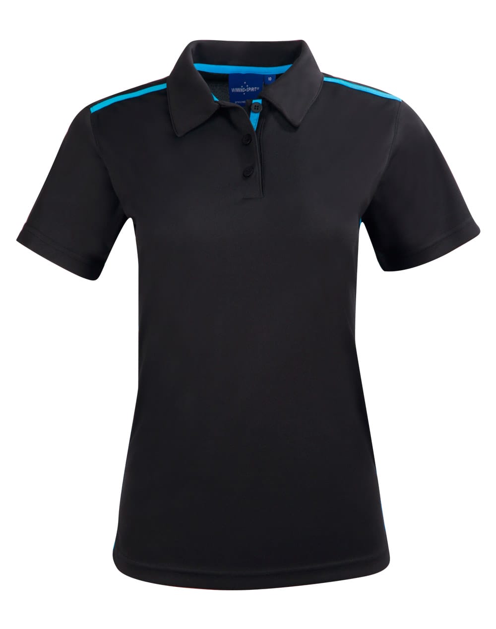 Style: Fine pique fabric with contrast stretch tapes on shoulders, inner placket and body sides. Self-fabric collar.